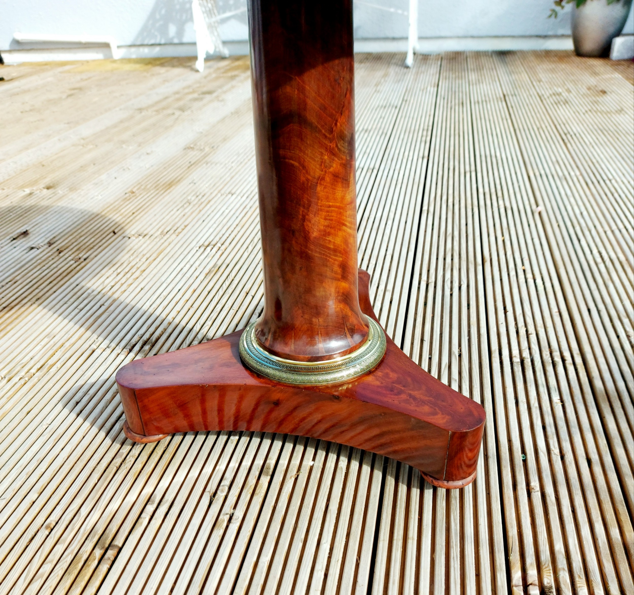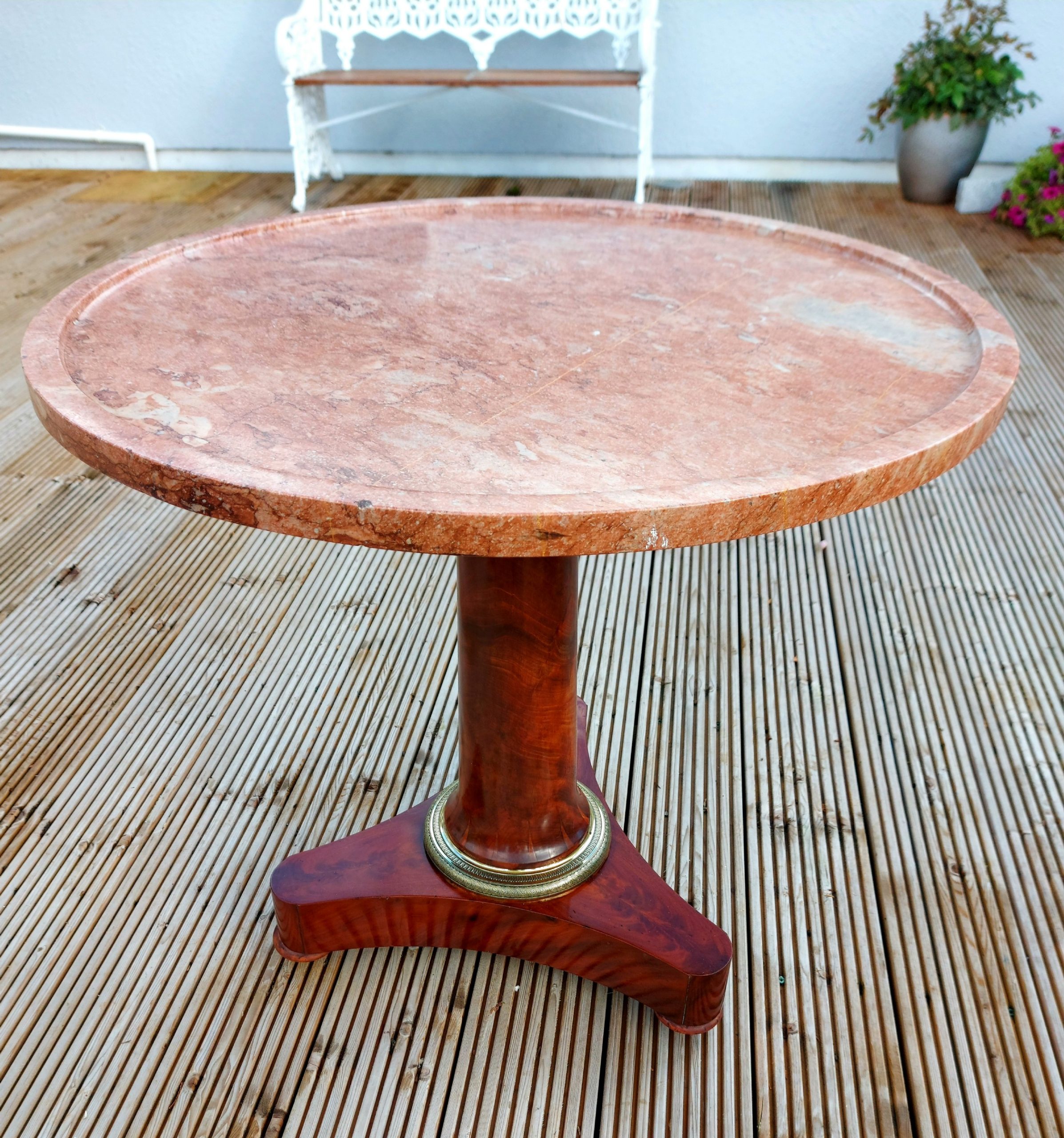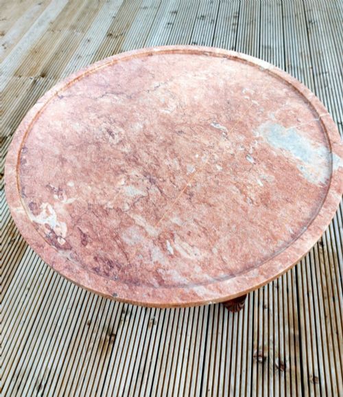 A 19th Century French marble top centre table / Gueridon retaining its original marble top with moulded edge and decorative brass ring to base. (The orange line through the marble is not a crack but an original vein in the marble).