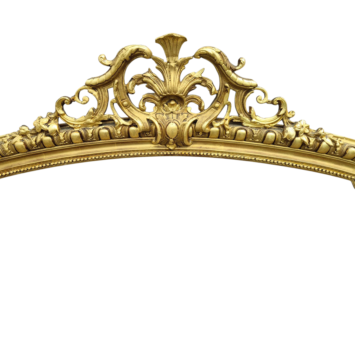 A large 19th Century French Gilt Overmantle / Pier mirror with a lovely ornate crest and detailed frame.