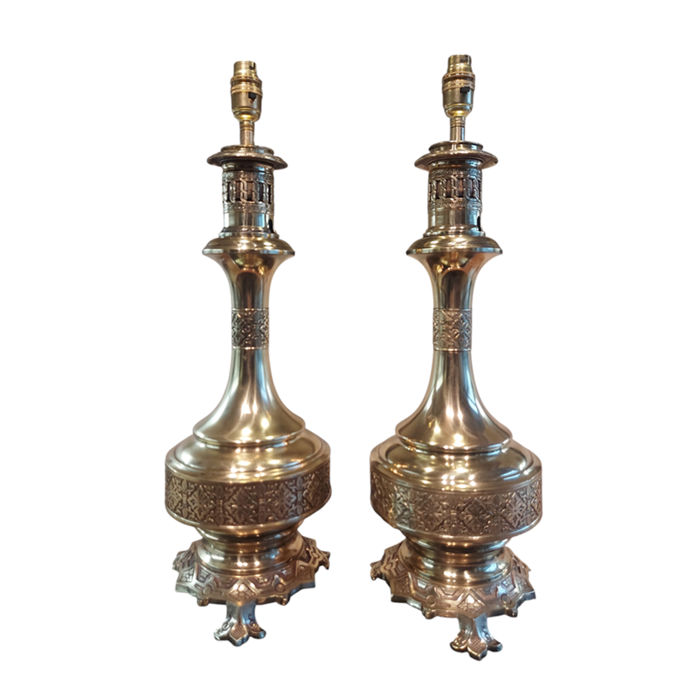 A Pair of Tall Ornate Brass Table Lamps