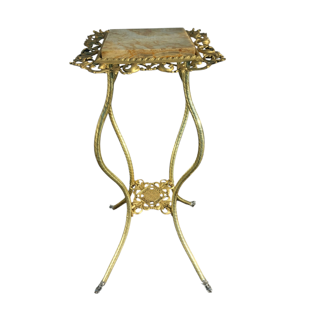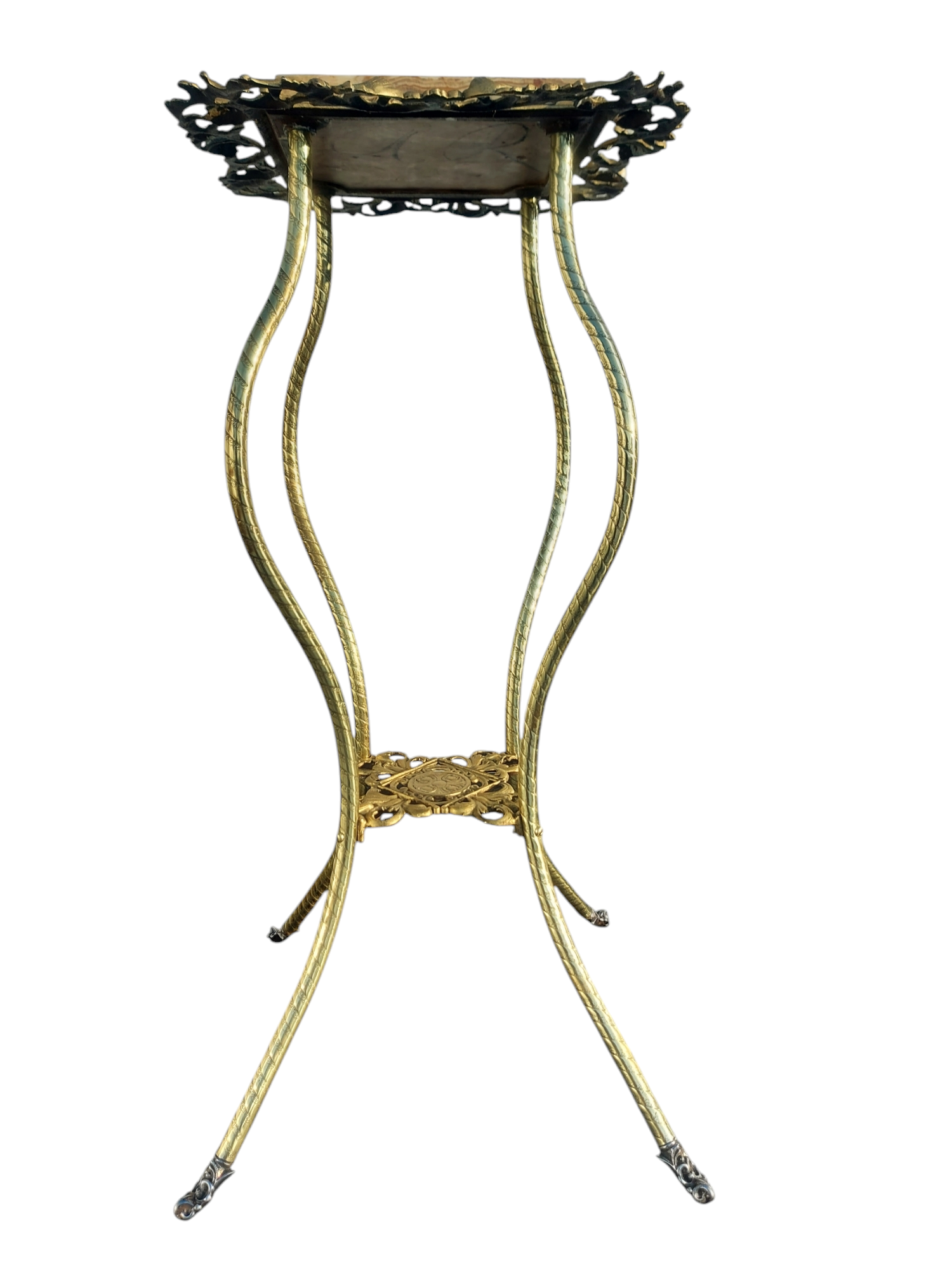 Edwardian Cast Brass Jardiniere Stand with Marble Top