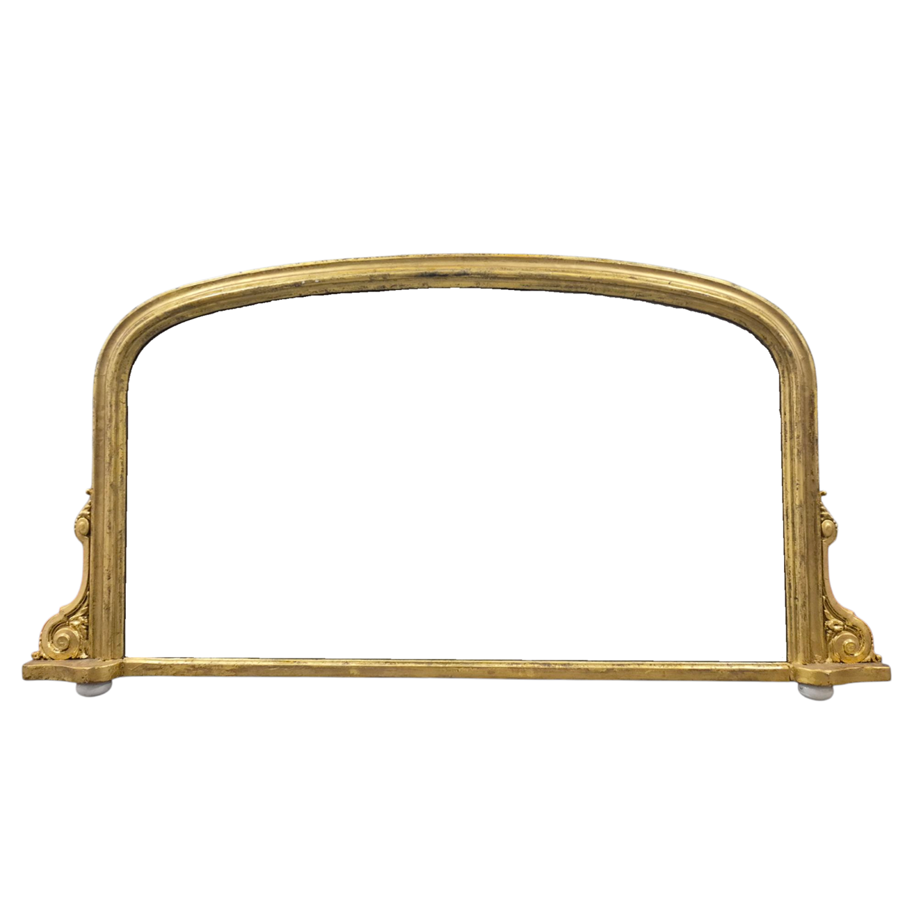 A lovely sized 19th Century Gilt Archtop Overmantle Mirror on white porcelain feet.