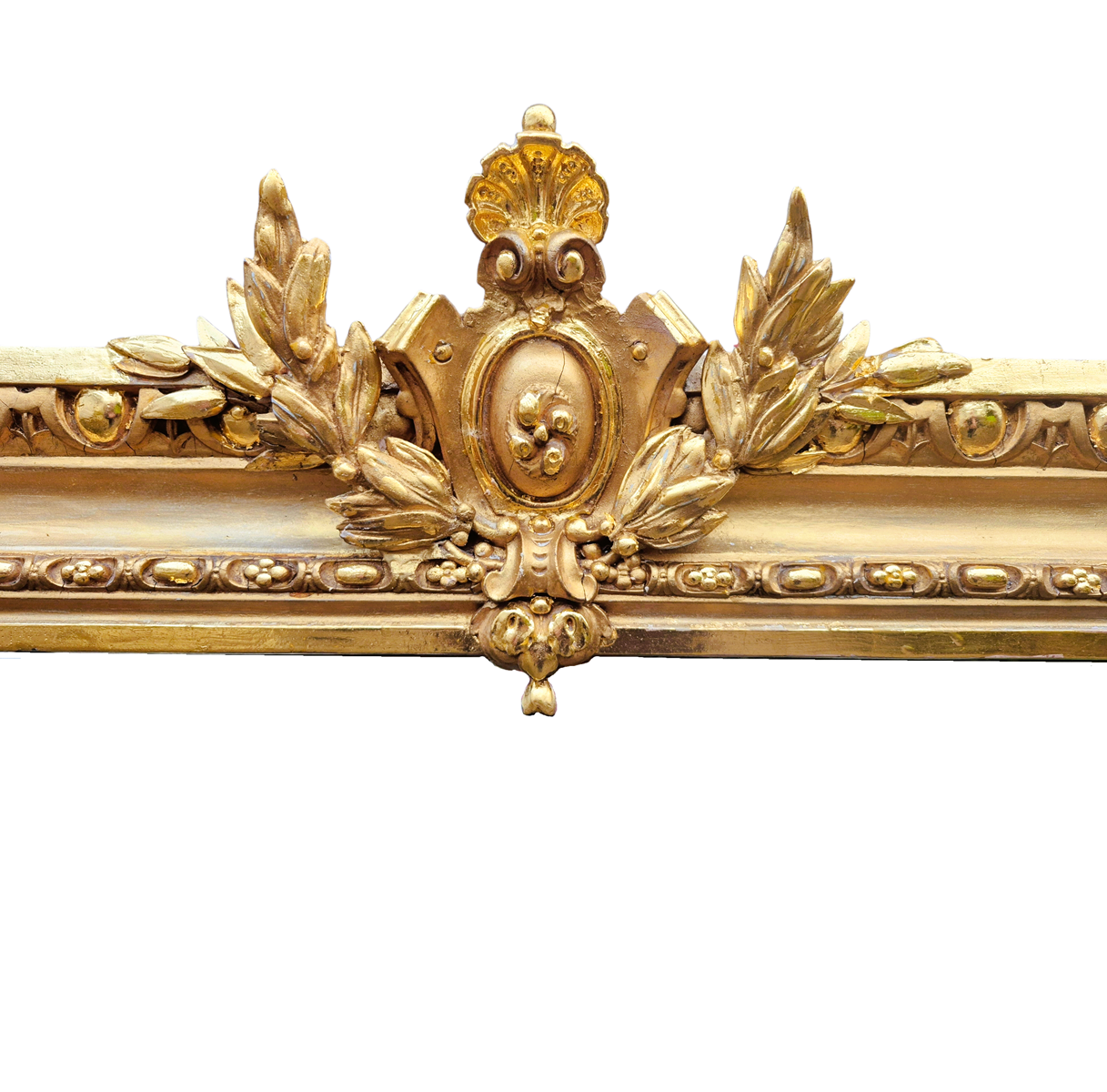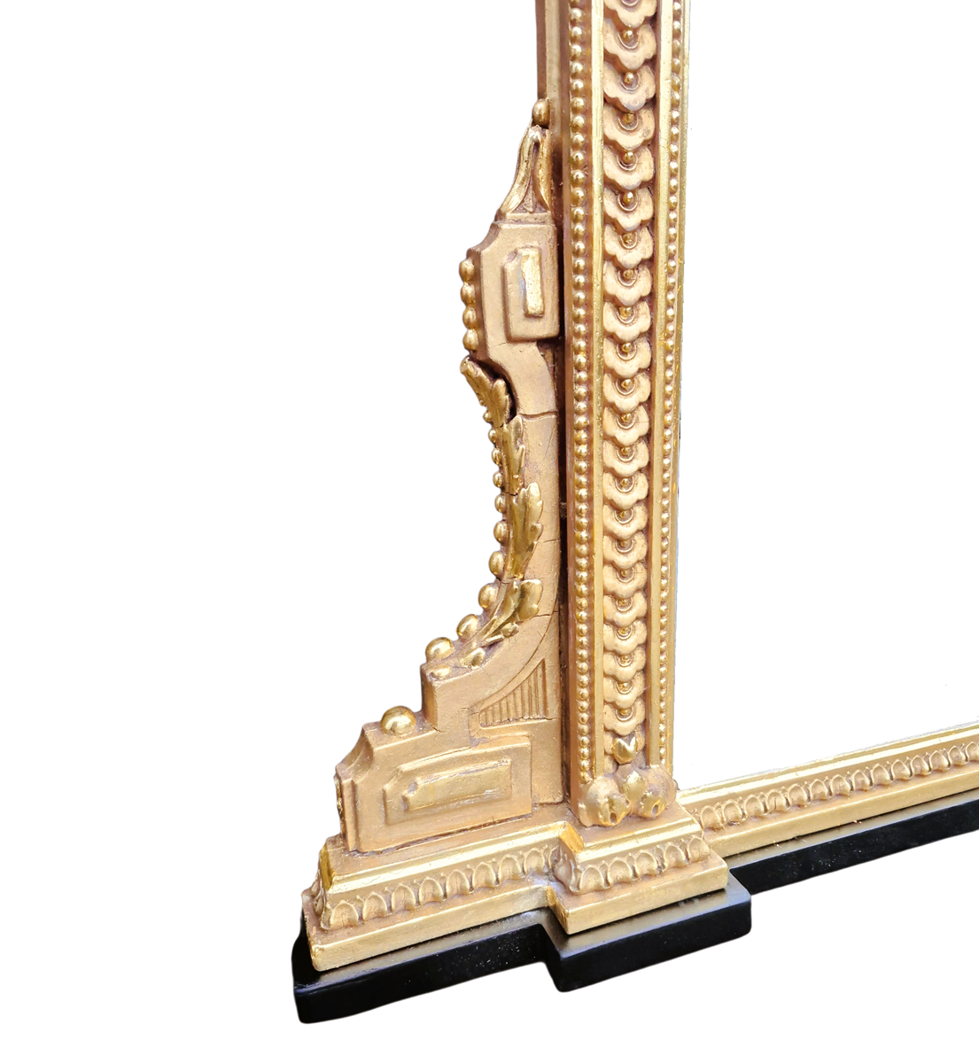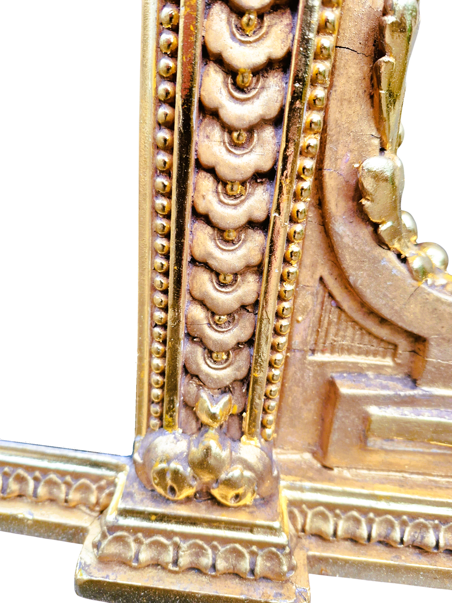 A fantastic large 19th Century rectangular gilt overmantle mirror which has just been restored and gilded with 23.75 carat gold. This is a very good quality mirror which retains its original 8mm mirror plate and original backboard. Most of the restoration was gilding with minor repairs to the frame.