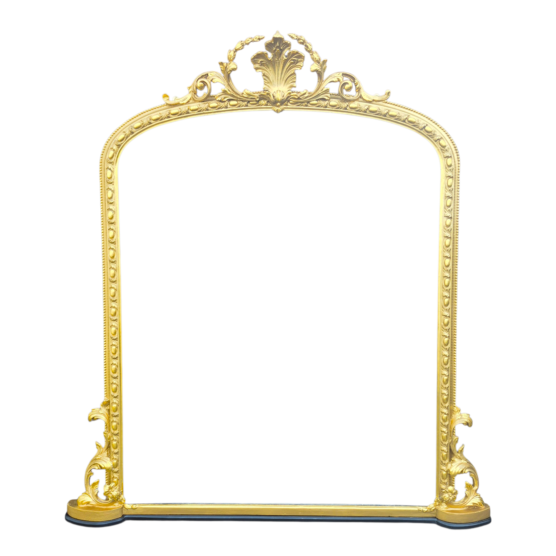 A large 19th Century Gilt Overmantle Mirror regilded with 23.75 carat gold which retains its original backboards