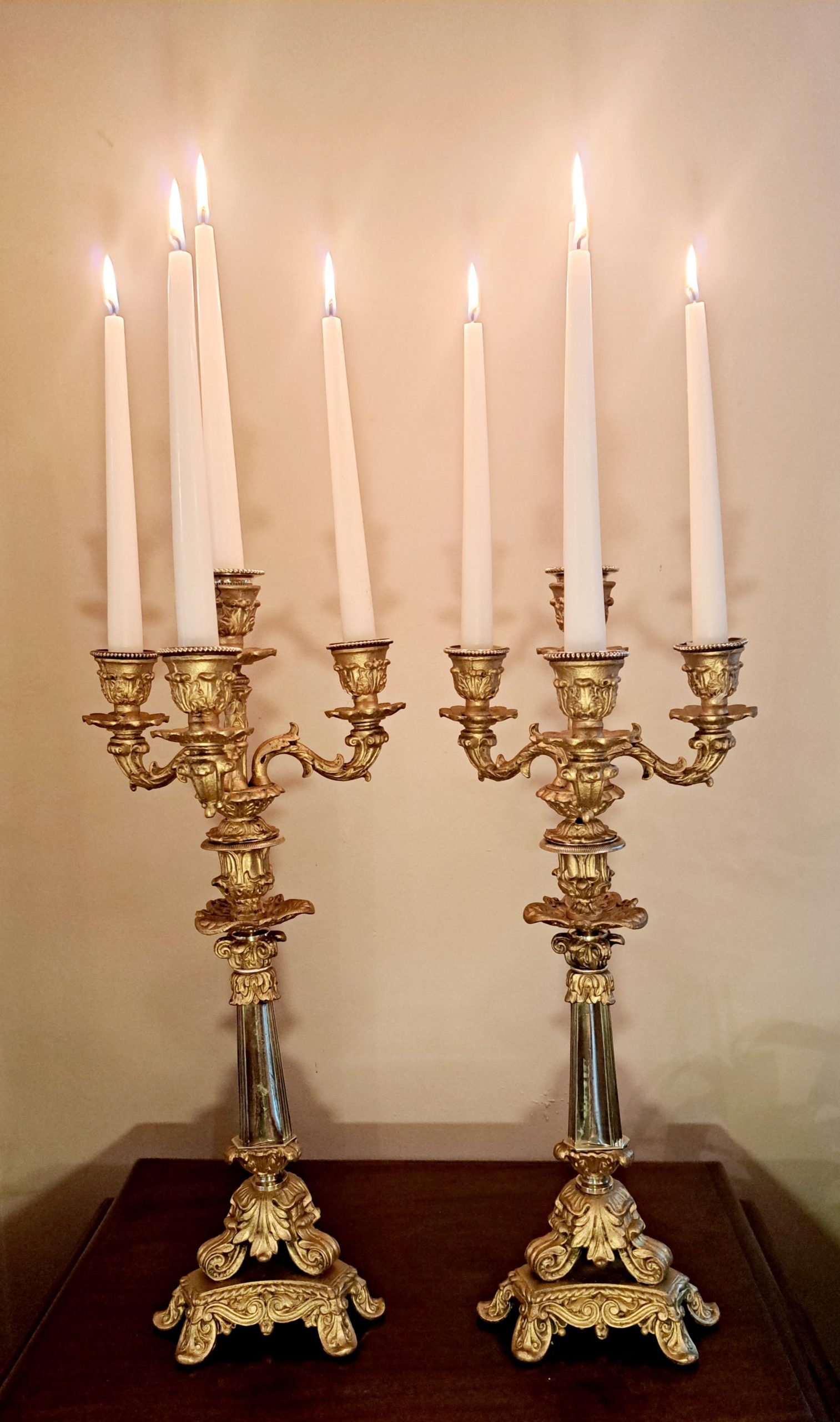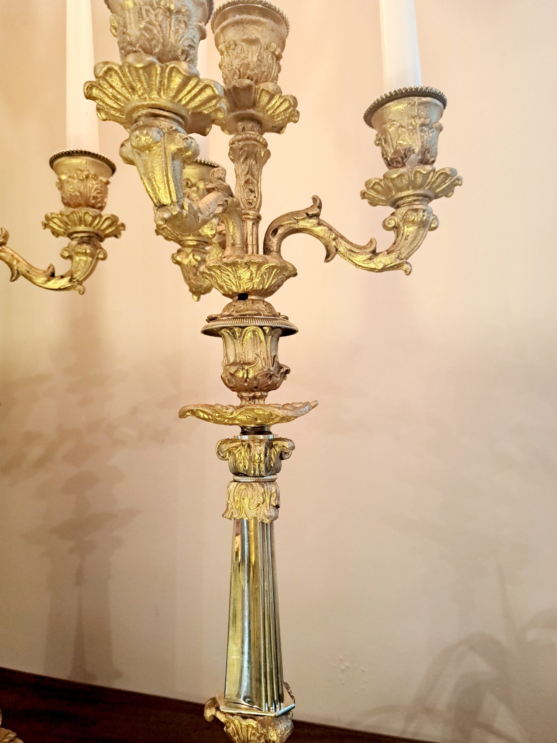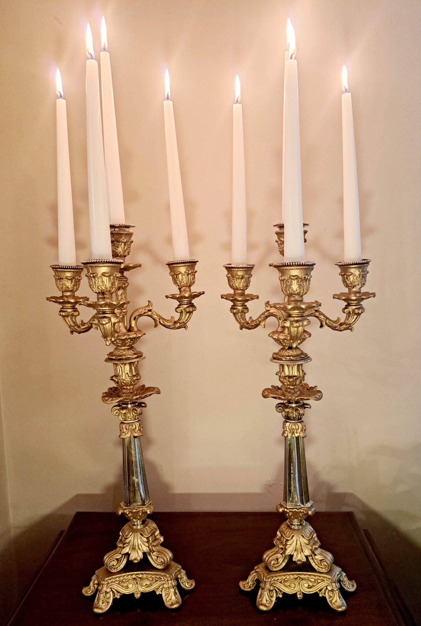 A large pair of 19th Century four sconce gilt and brass Candelabra.