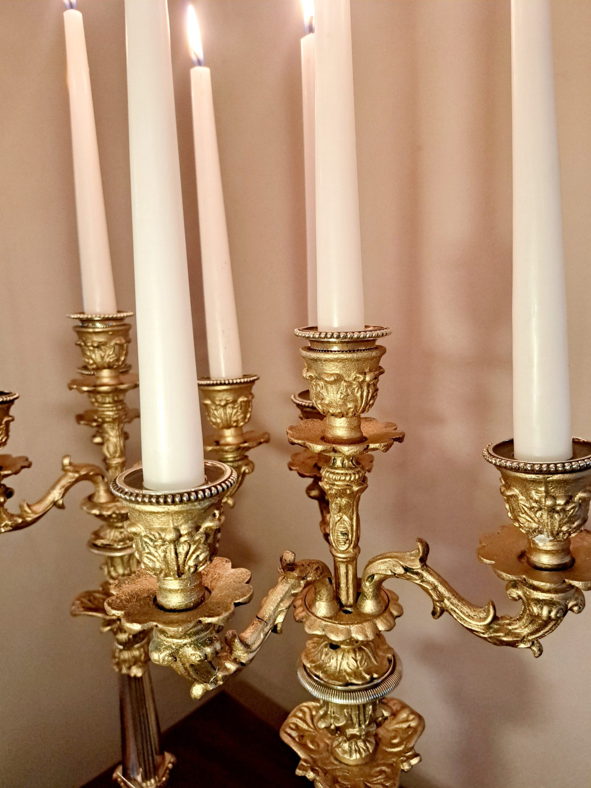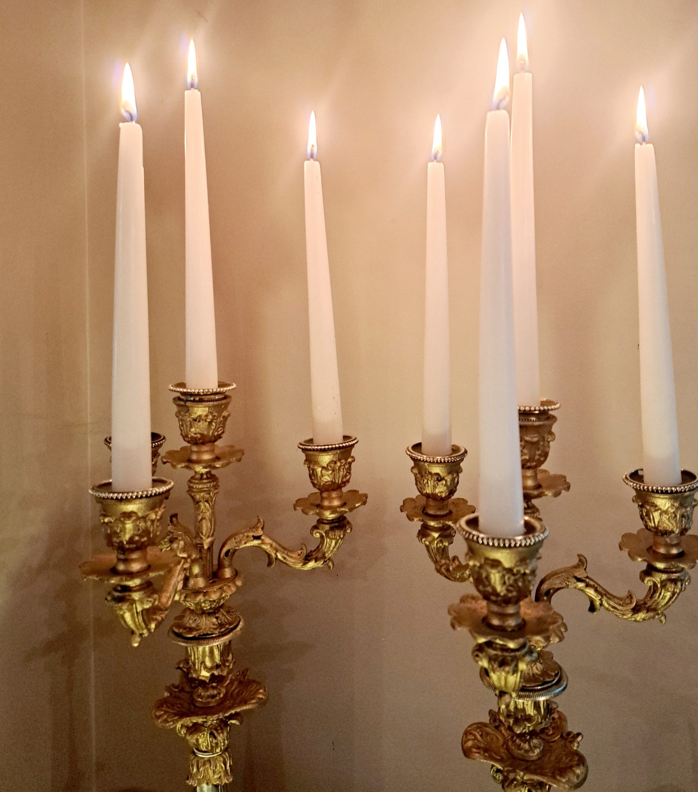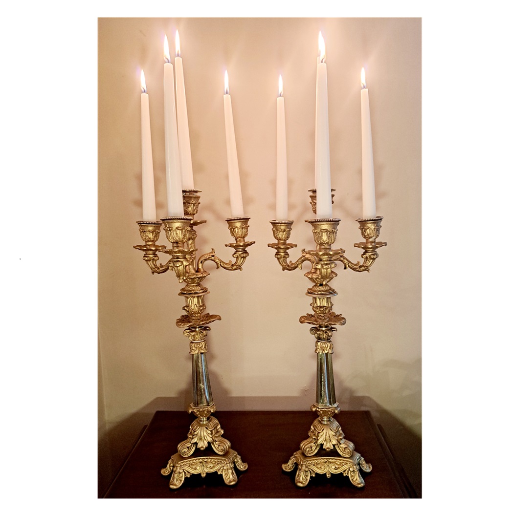 A large pair of 19th Century four sconce gilt and brass Candelabra.