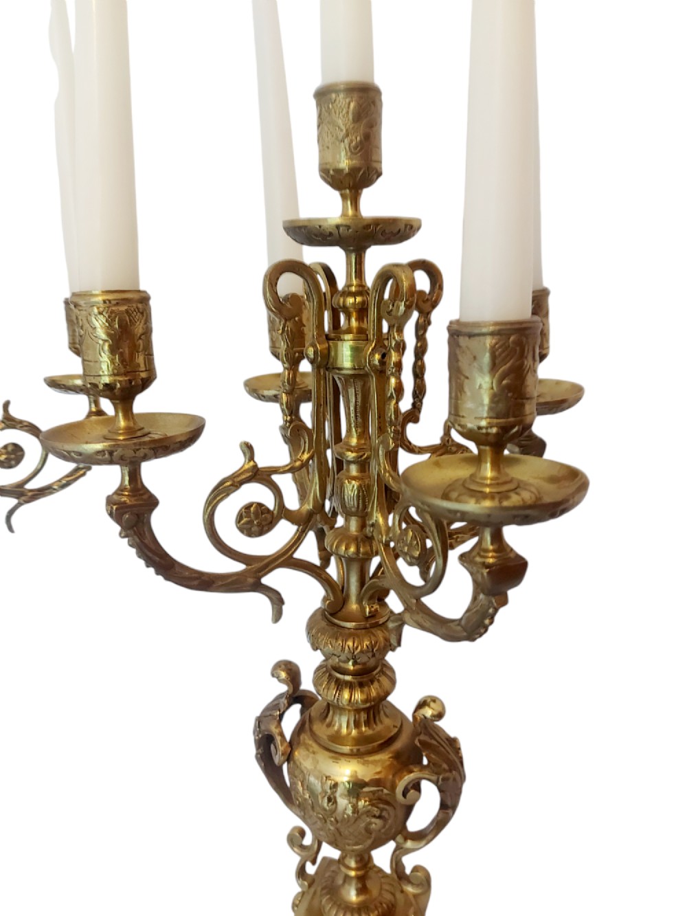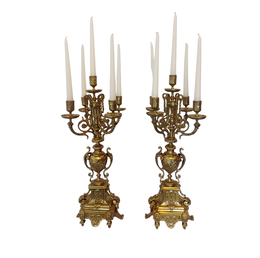 A pair of tall 19th Century French Gilded Bronze Candelabra.