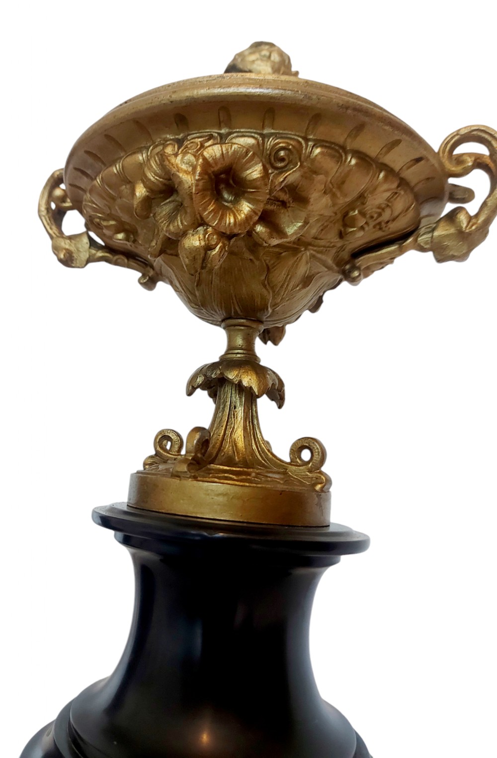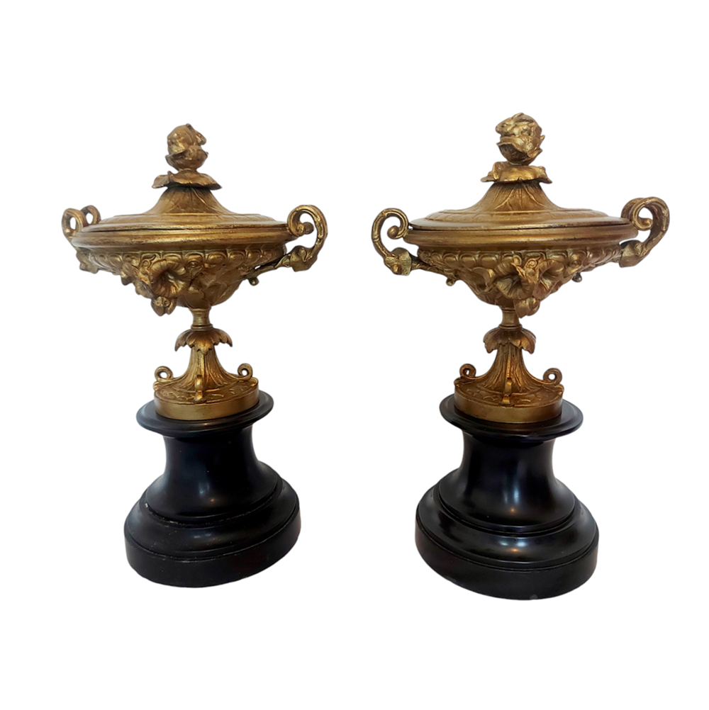 A pair of 19th Century French Gilt metal Lidded Tazzas on slate bases.