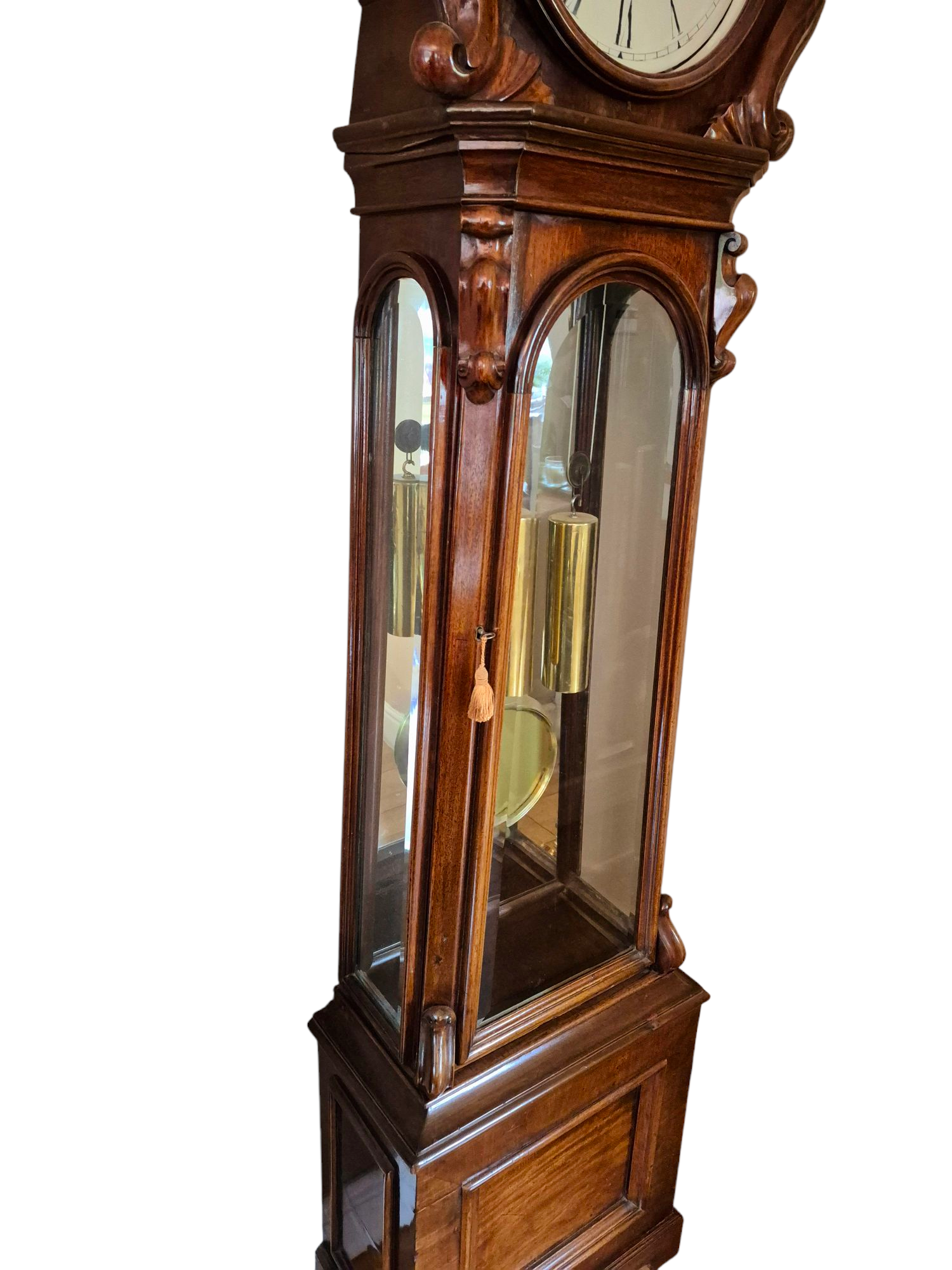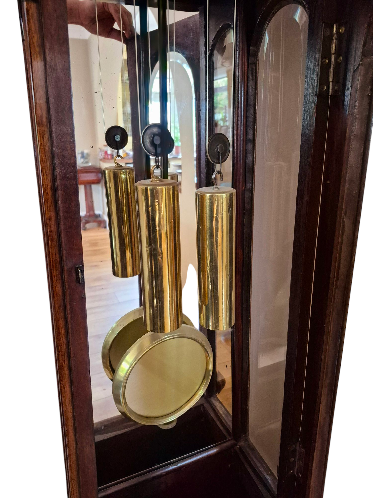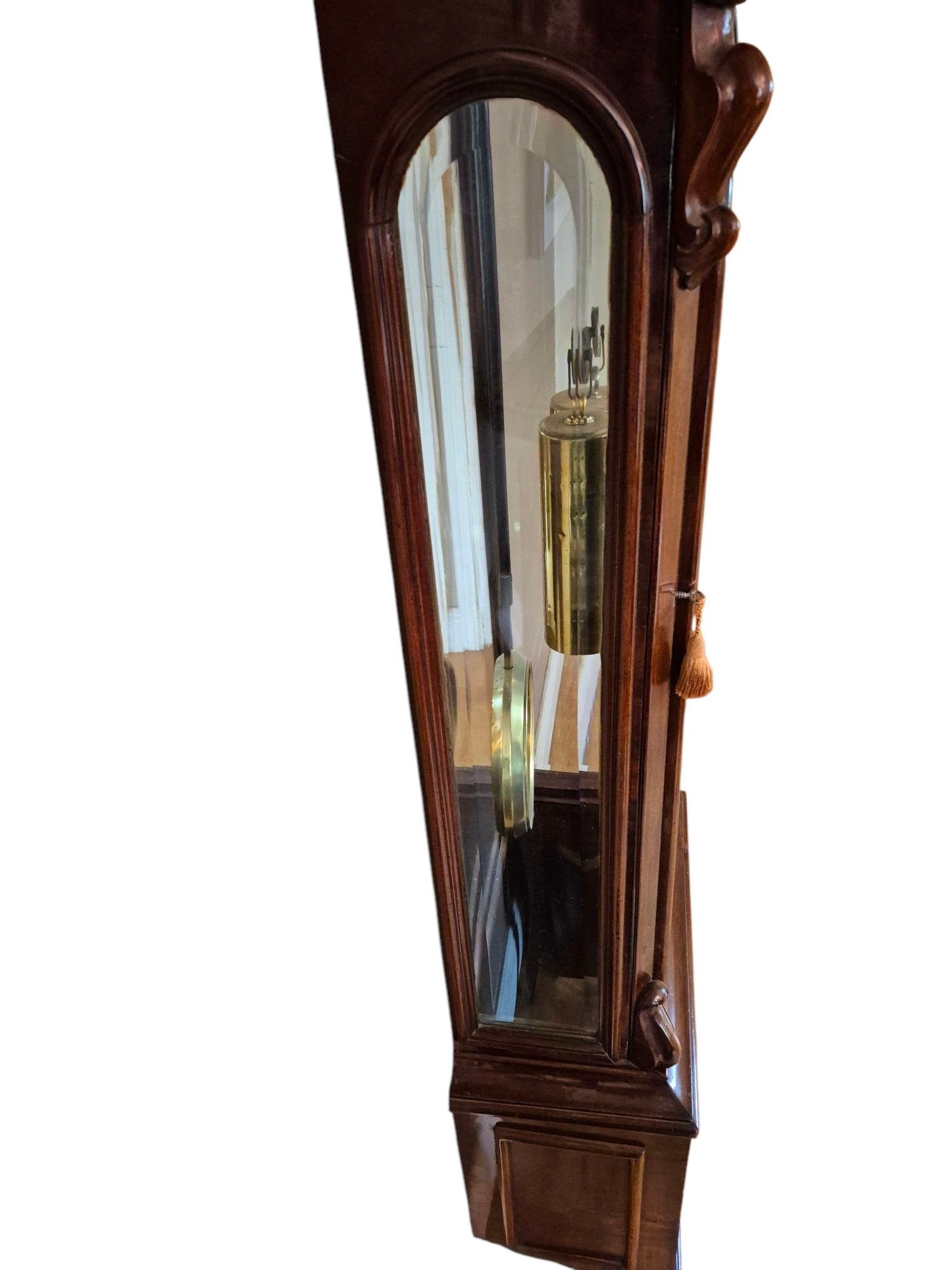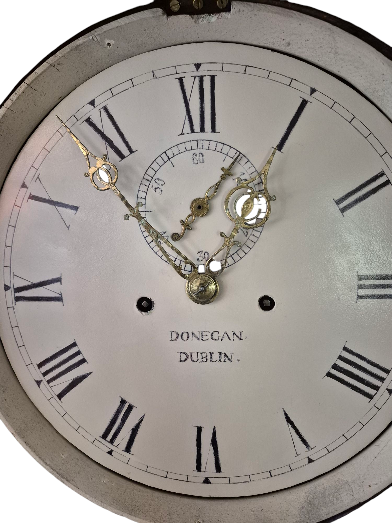A very rare Irish 19th Century Mahogany Grandfather Clock by Patrick Donegan, Dublin. The clock is the rarest model with three bevelled glazed panels to the front door and the two sides. This is a regulator type mechanism which has been professionally serviced and is keeping perfect time. The clock has its original key.
